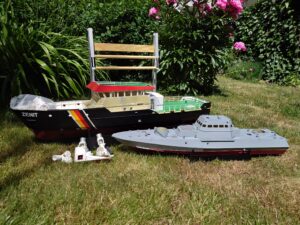 K vidění modely před dokončením: Gurza-M projekt 58155, ukrajinský dělový člun (2014, 23m, model 1:25, délka 920mm), Zenit, německá pracovní loď WSV (2004, 30.09m, model 1:25, délka 1203mm a 1:50). Dále funkční bow thruster, Veth Jet a pod.