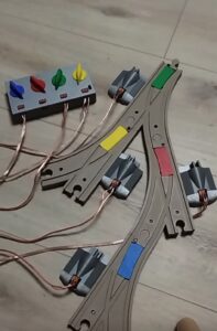 Každý pozná drevené vláčiky Lilabo z IKEA alebo tiež Brio. Existujú k nim aj mechanické výhybky, ktoré môžete sami ovládať. Ale nikto nepredáva elektrické výhybky pre tieto vláčiky.