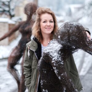 Uvidíte mě pravděpodobně na štaflích s kladivem v ruce, jak buším do změti drátů, ze které vyrůstá stylizovaná lidská postava. Jsem sochařka a na Maker Faire budete moci vidět mé práce i to, jak je dělám.