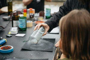 V Michnovském letohrádku na Kampě provozujeme komunitní centrum – Skautský institut v Rybárně. Pořádáme několik desítek programů pro veřejnost měsíčně a provozujeme několik sdílených dílen. Výroba sklenic ze starých lahví je jedna z aktivit, kterou se mohou naši návštěvníci naučit na organizovaném workshopu, nebo se jí věnovat sami v naší dílně. Jedná se o poměrně jednoduchou aktivitu, která zahrnuje práci s ruční řezačkou, plynovým hořákem a spoustou brusných houbiček. Starou skleněnou lahev lze proměnit v designovou sklenici na pití, vázu, svícen, popelník,…