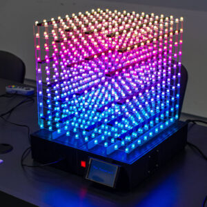 Přijďte se podívat na náš stánek a zažijte na vlastní oči trojrozměrný LED displej ve tvaru kostky o velikosti 10 x 10 x 10 diod! Tento jedinečný projekt je složený z tisíce jednotlivě programovatelných LED diod, které vytvářejí fascinující světelné efekty. Na naší kostce můžete vidět 14 různých světelných show, jako jsou duha, planety, nebo dvojitá spirála. Jeden z efektů dokonce reaguje na okolní hudbu, čímž vytváří neopakovatelnou atmosféru.