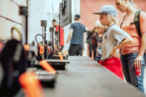 Uvidíte projekty, které vznikly v rámci předmětů stavba a provoz strojů, automatizace a robotika nebo v kroužku robotiky. Vyzkoušíte si ovládání robota nebo si ho budete moci i naprogramovat.