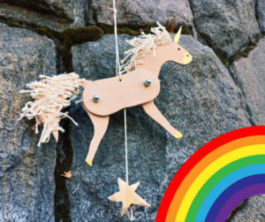 Na letošní Maker Faire jsme se inspirovali tradičními “tahacími” panáčky. Vyrobíte si v podobném stylu běžícího jednorožce.