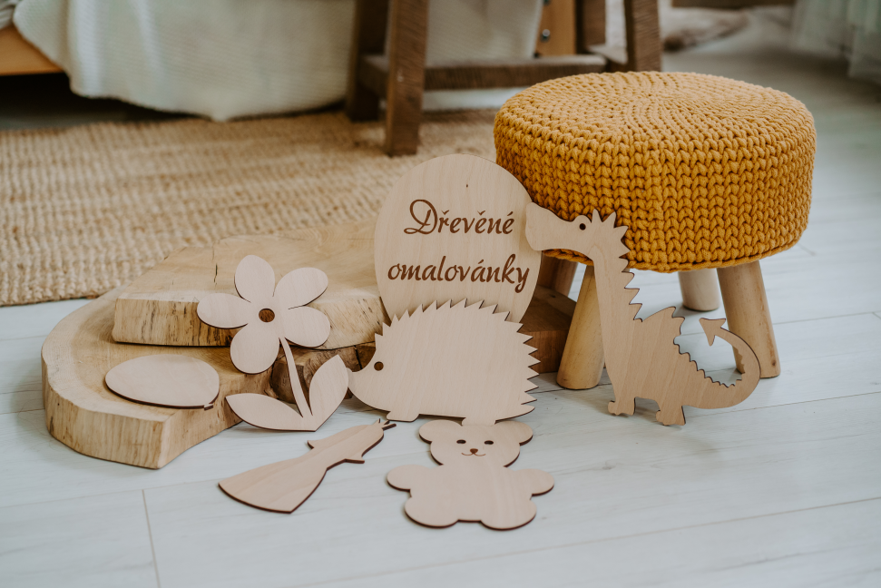 Pro děti budu mít připravené dřevěné omalovánky – jedná se o výřezy z překližky, v nabídce jsou různé tvary – zvířátka, auto, raketa, květina, domeček a mnoho dalších. Děti si budou moci vybrat jakýkoliv tvar a na místě za 69 Kč vymalovat. Výrobek si odnesou domů.
