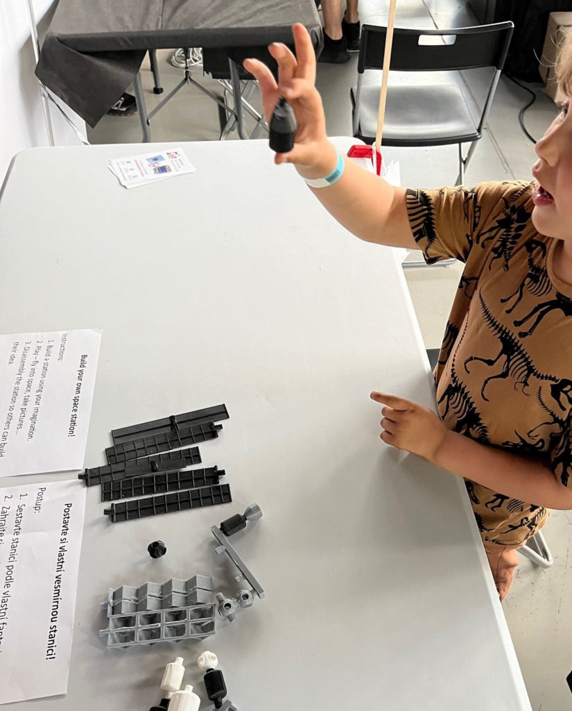 – Vesmírná stanice: každý si může sestavit vlastní originální stanici z nabízených 3D vytištěných dílů a vyfotit si ji na památku.