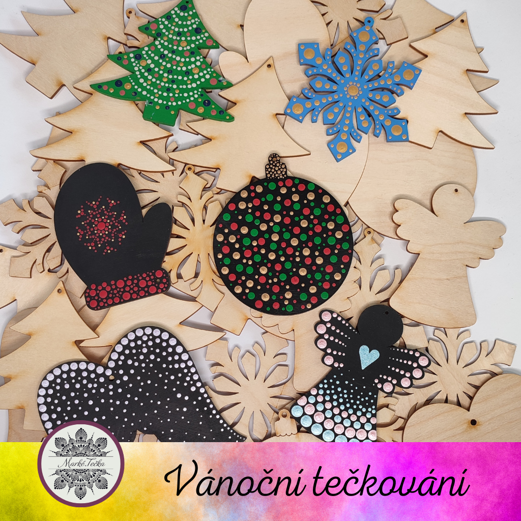 Jsem MarkéTečka a chci vám ukázat tečkování. Na stánku vás na dílničce zasvětím do základů této výtvarné techniky a vy si pod mým vedením vytvoříte vánoční ozdobu na dřevěné překližce. Na výběr bude z devíti motivů.