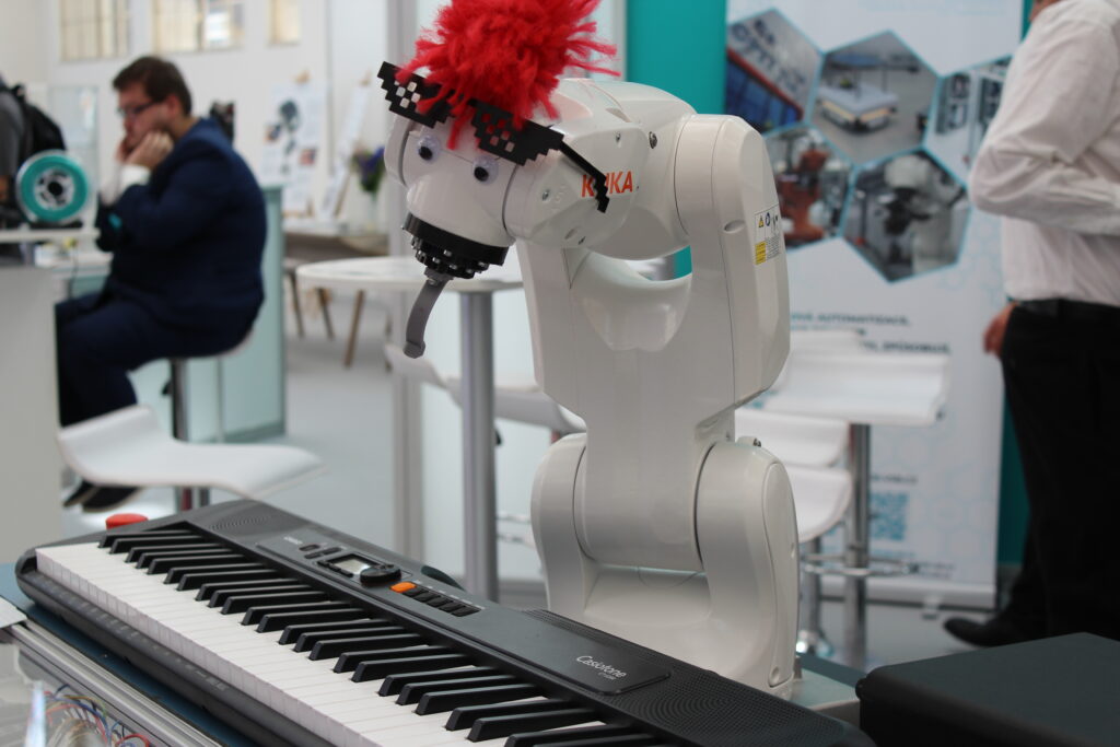 Robot klavírista – 6-osé robotické rameno KUKA, které hraje na klávesy. Jedná se o zajímavou ukázku propojení moderní technologie a hudby.