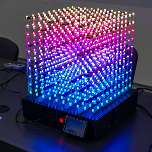 Přijďte se podívat na náš stánek a zažijte na vlastní oči trojrozměrný LED displej ve tvaru kostky o velikosti 10 x 10 x 10 diod! Tento jedinečný projekt je složený z tisíce jednotlivě programovatelných LED diod, které vytvářejí fascinující světelné efekty. Na naší kostce můžete vidět 14 různých světelných show, jako jsou duha, planety, nebo dvojitá spirála. Jeden z efektů dokonce reaguje na okolní hudbu, čímž vytváří neopakovatelnou atmosféru.