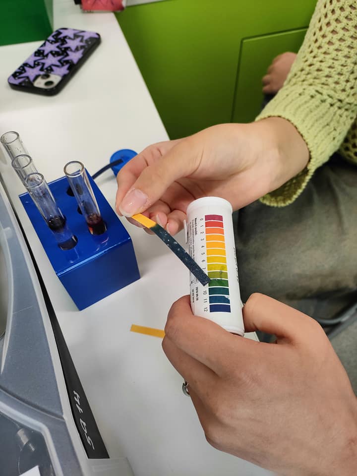 Měření pH látek, barevné změny, neutralizace doprovázená šuměním oxidu uhličitého.
