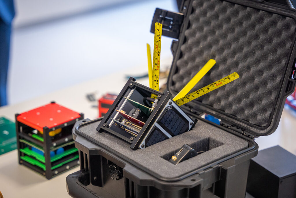 Návštěvníci budou mít možnost procvičit si pájení na našich klíčenkách, které po zapojení svítí. Dále mohou vidět ukázky prototypů, elektroniky, a struktury nanosatelitů, kterým se věnujeme.